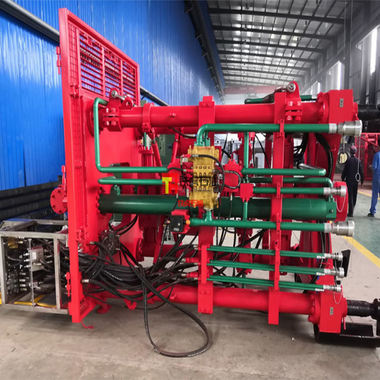 主机部分自下而上分别配置有:安全三闸板防喷器、单闸板防喷器、平衡泄压系统、环形防喷器、固定万能卡瓦、游动万能卡瓦;井压较低时,使用环形防喷器密封管柱使接箍通过,井压较高时,使用单闸板防喷器盒环形防喷器配合导入/导出接箍。