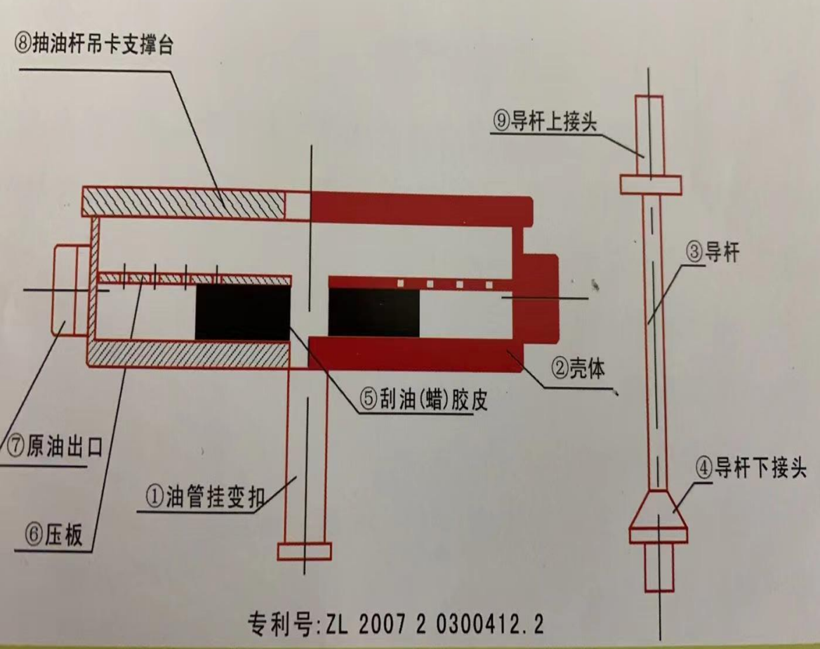 产品特性:该产品壳体两侧出口可以联接合适的软管,刮出的原油和蜡质可以引入土油池回收,满足环保的要求。本产品结构紧凑、安装简便,胶皮经久耐用,可起下抽油杆2000根以上,具有优良的刮油刮蜡效果。