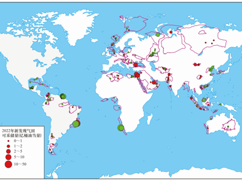 2022年,全球新发现油气田259个,可采储量29.5亿吨油当量,与2021年相比增加约9.4亿吨油当量。 新发现常规大-中型油气田31个,数量仅占新发现常规油气田总数的12.97%,但可采储量达25.47亿吨油当量,占比86.34%。 油气技术剩余可采储量前三名分别是俄罗斯、卡塔尔、美国……